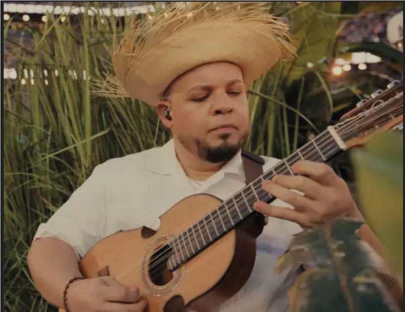 Aparece el cuatro puertorriqueño, instrumento emblemático, en un momento de transición musical. Es un recordatorio de que un símbolo no siempre es una imagen: a veces es un timbre, una cuerda, una tradición sonora.