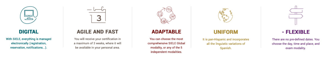 SIELE is the Servicio Internacional de Evaluación de la Lengua Española which certifies electronically the command of the Spanish language proficiency for students and professionals.