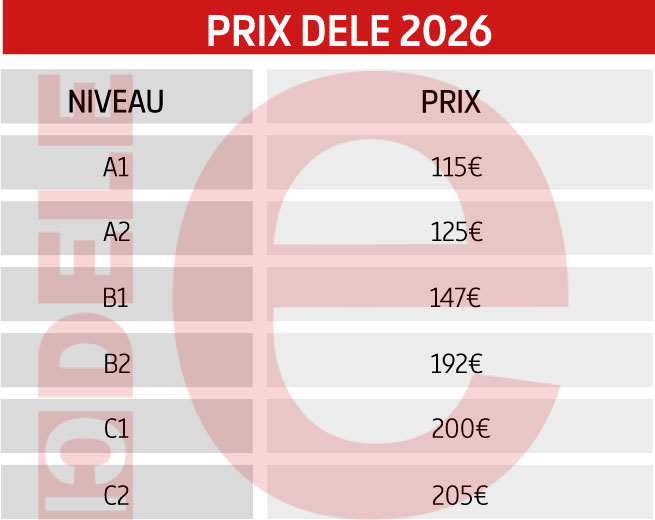 Frais d’inscription aux examen DELE en France en 2026