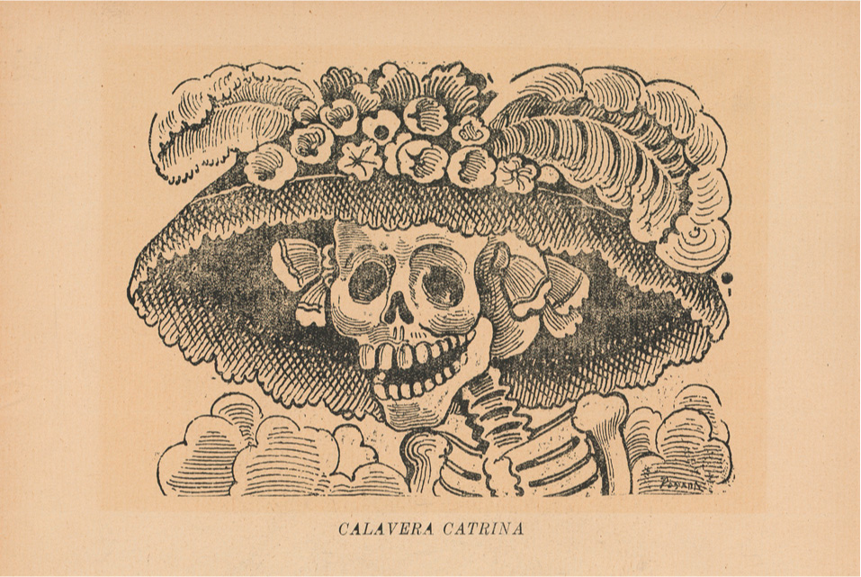 La Catrina est une gravure sur métal publiée en 1873, d’après une illustration originale du graveur et caricaturiste mexicain José Guadalupe Posada (1852-1913), qui représente une tête de mort coiffée d’un chapeau à plumes à la mode européenne de l’époque. Son nom original était « La Calavera Garbancera » (« Le crâne de Garbancera »), car c’était le nom donné aux personnes qui vendaient de la garbanza (un pois chiche plus gros, plus blanc et de meilleure qualité) et qui, bien qu’ayant du sang indigène, se faisaient passer pour des Européens, niant ainsi leur race et leur héritage culturel. Posada a déclaré à propos de ces personnes :
